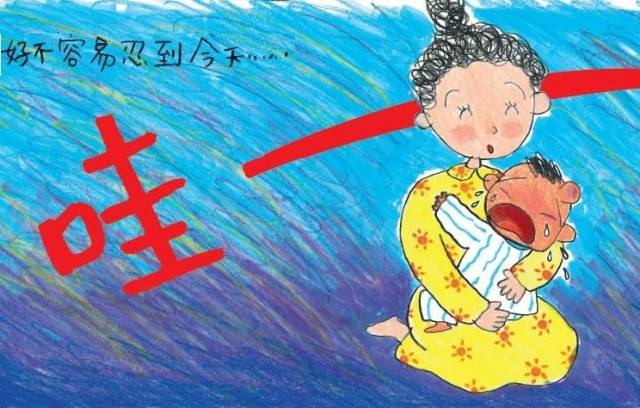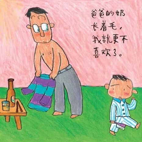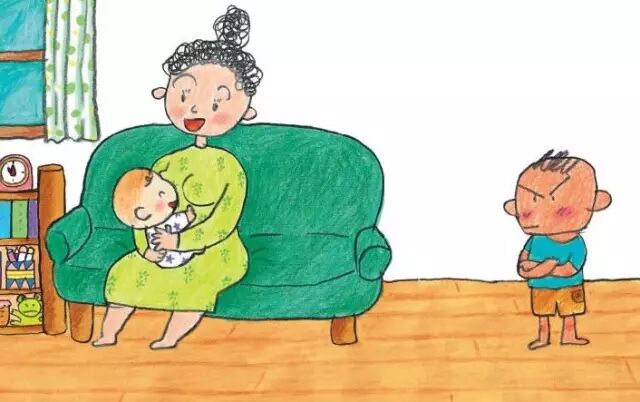 所以,当书中的小哥哥的头被撞到,寻求妈妈的安抚时,就觉得妈妈的奶又香又暖和……积蓄多时的对妈妈的爱被弟弟分享的担心,一下子爆发了,这个才是这个小男孩儿“最讨厌奶”的导火索吧。