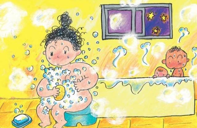 妈妈洗澡慢腾腾的,