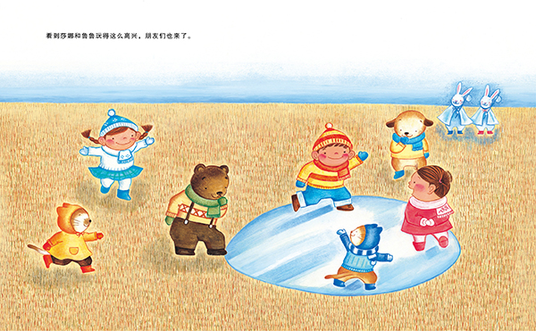 春天来了,可还是不暖和,小水洼里还结着冰。莎娜和鲁鲁试着在冰上滑冰,引来了好多小伙伴。大家正玩得开心,来了一对双胞胎兔子,跟着兔子向前滑,滑过的地方竟然都变成了冰路。大家越滑越快,滑过房子、山谷、悬崖……令人惊叹的奇幻之旅。